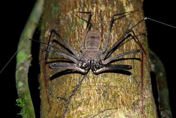 Фрін. У цього павука відсутні як отруйні, і павутинні залози; вони полохливі і не становлять небезпеки для життя людини. (Geoff Gallice)