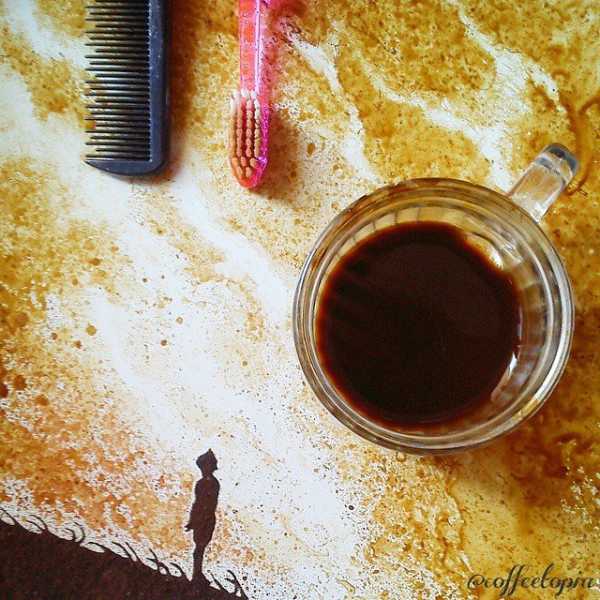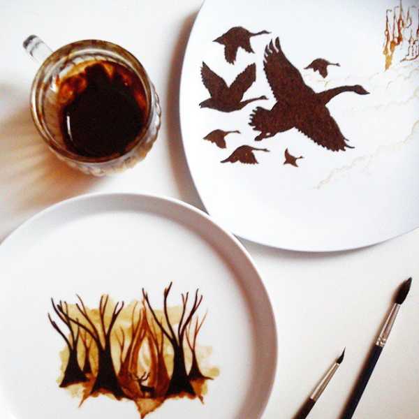 Малювання за допомогою кави стає все більш поширеним. Так, любитель кави, індонезійський художник Чидак аль-Нізар (Ghidaq al-Nizar) використовує ароматний напій, щоб малювати ним на листі, тарілках та папері, а також використовує кавову гущу для створення художніх композицій. Свої роботи він розміщує в Instagram під хештегом #zerowastecoffee (що можна перекласти як кава зовсім не витрачається), тому що малює тим, що залишилося в чашці від ранкової кави, намагаючись використовувати все до останньої краплі, у тому числі кавової гущі.