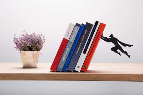 Книжкові полиці з супергероями, які рятують книги від падіння