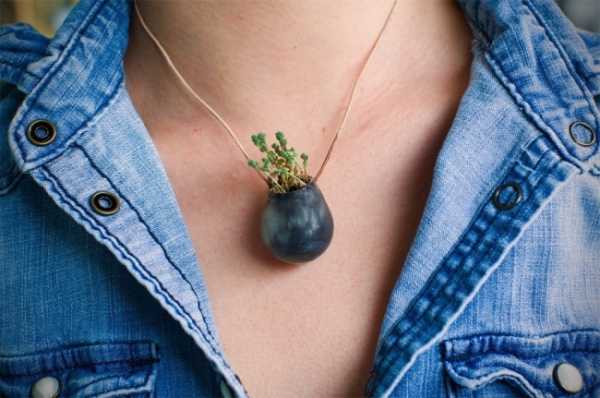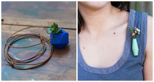 Ідеальна прикраса для аматорок природи від дизайнера Колін Джордан. Крихітні вазочки надруковані на 3D-принтері, а квіти і сукуленти – живі і ростуть у поживній суміші. Їх можна носити на шиї, ставити на робочий стіл або кріпити на кермо велосипеда.