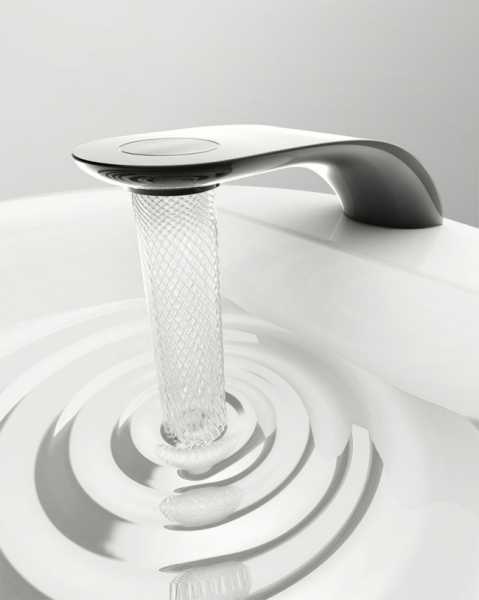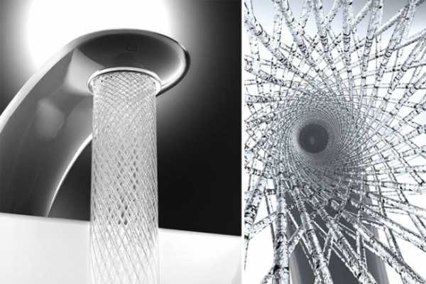 Молодий дизайнер із Лондона Сімін Ціу (Simin Qiu) створив унікальний кран, який не тільки приголомшливо виглядає, а й дозволяє економити воду, перетворюючи струмінь води на елегантно закручену спіраль. Потік води розщеплюється на струмені, і на виході ми бачимо складні та красиві водяні грати. Турбіна обмежує потік води на 15%, тому кран значно заощаджує витрати ресурсів.