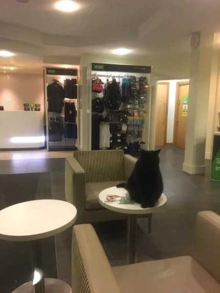 Цей кіт слідує за своїм господарем у спортзал, а потім сидить у приймальні, чекаючи, поки господар закінчить тренування
