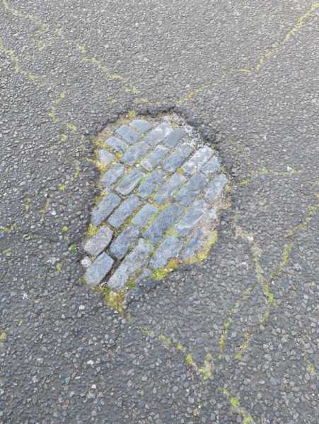 Дорога на моєму шляху на роботу зношується, і оголюється стара вулиця, брукована каменем. Лондон.