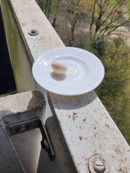 Голуби знесли яйце на блюдце у мене на балконі.