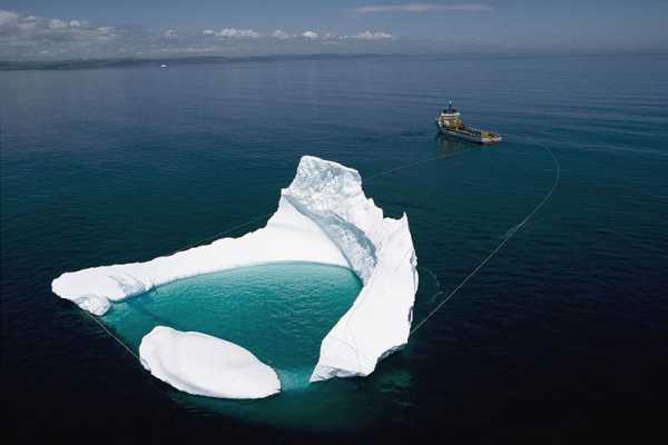 Корабель буксирує айсберг біля берегів Ньюфаундленду.