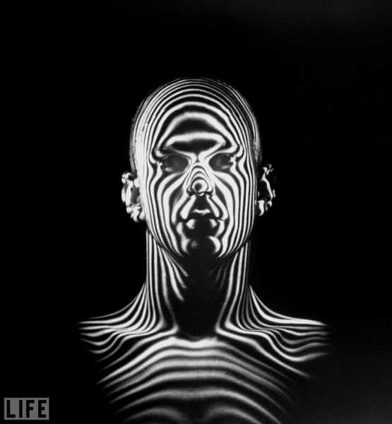 Замір антропологічних даних пілота спеціальним освітленням з смуг світла, що чергуються, і тіні різної товщини під час проведених US Air Force робіт з конструювання нового льотного шолома.