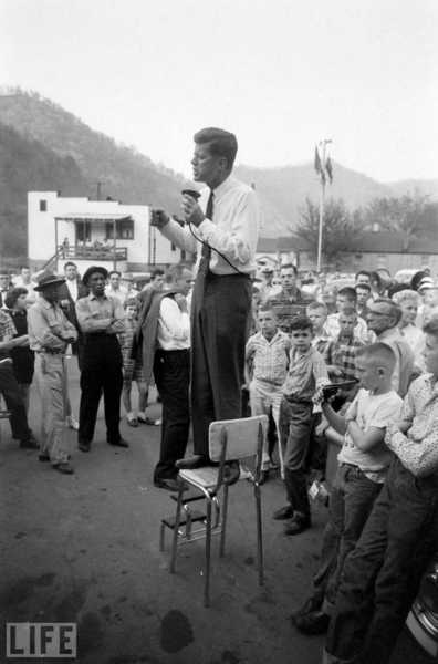 Джон Кеннеді виступає під час передвиборчої кампанії в американському містечку.