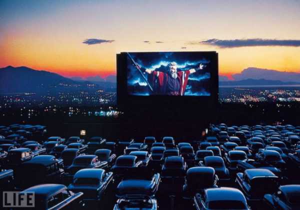 Автокінотеатр у столиці штату Юта Солт-Лейк-Сіті. На екрані Мойсей перед Червоним морем, що розступається, у фільмі «Десять заповідей».