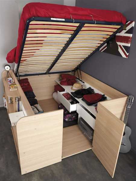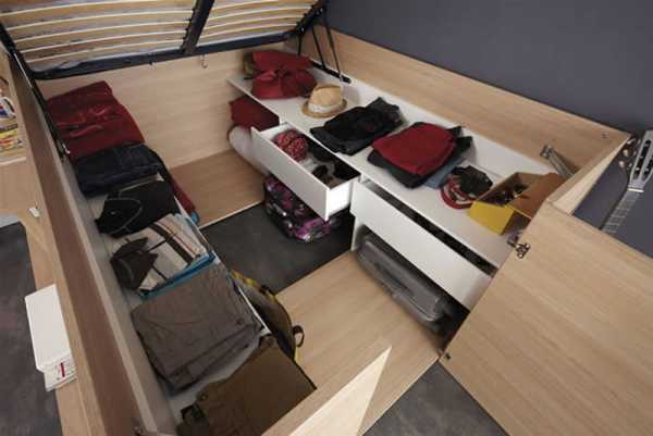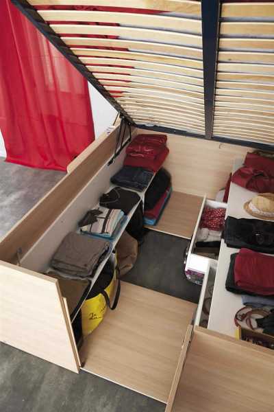 А для того, щоб отримати доступ до полиць і ящиків, необхідно лише відкрити дверцята і підняти матрац.