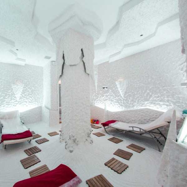 Після процедур гості можуть скористатися басейном із солоною водою розміром 25х12 метрів або відвідати соляну печеру площею 65 квадратних метрів, де відтворено особливий мікроклімат із негативно зарядженими іонами.