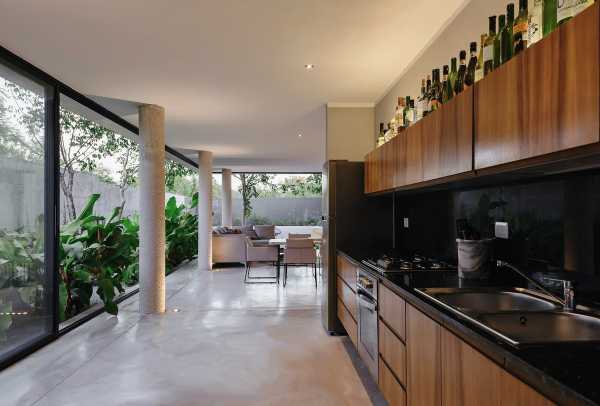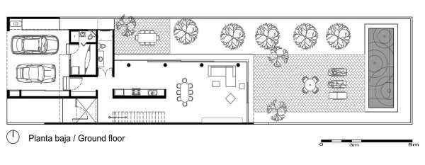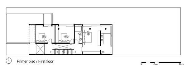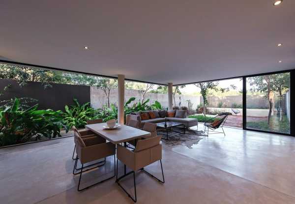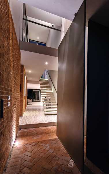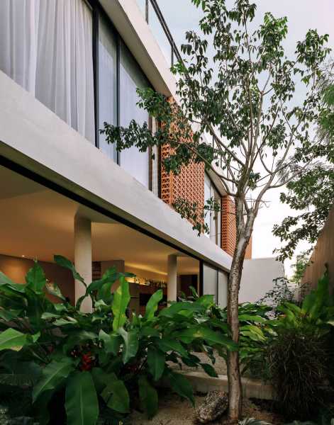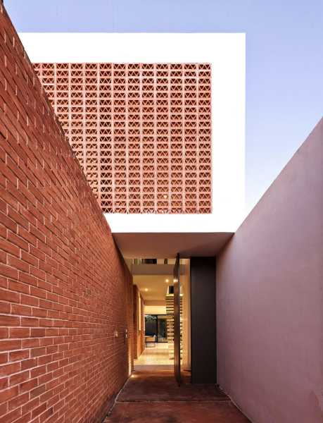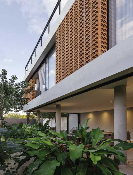 Прямі лінії, глиняні стіни та грати. Так виглядає фасад будинку, збудованого на вузькій та довгій ділянці розміром 10 х 40 метрів. Ключовим моментом у розробці проекту було вивчення юкатанської кліматології, яка потребує орієнтації вікон до тіні та вітрів узбережжя Юкатана. Зважаючи на ці якості, проект народився з програмою, що складається з 3 модулів: зона обслуговування, соціальна зона, а на верхньому поверсі — приватна зона з виходом на дах.