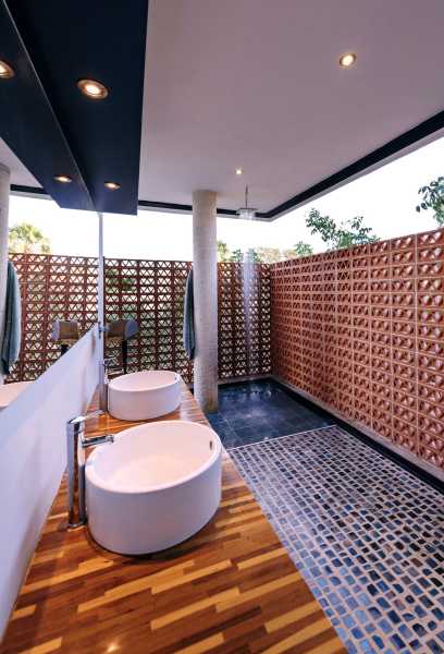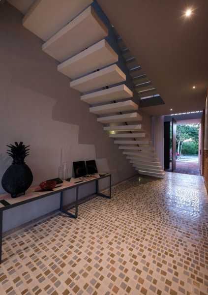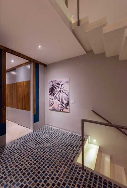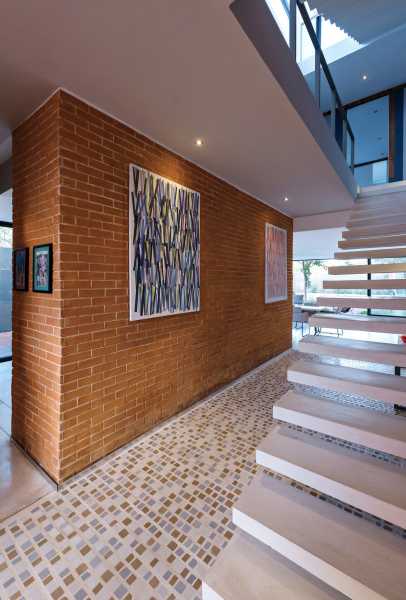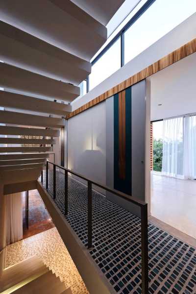 Глиняна решітка на верхньому поверсі використовується як елемент блокування сонячних променів, а також забезпечує усамітнення, створюючи прозорі «плівки» та набори світильників, що дають життя просторам. Проект представлений як будинок, де почуття свободи переважає, але без втрати приватності. Світло природним чином висвітлює простори і грає з палітрою кольорів землі і неба, створюючи баланс і гармонію для тих, хто населяє його.