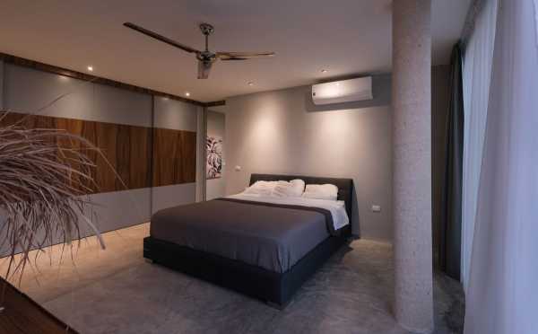 Верхній поверх складається з вестибюля подвійної висоти, який з'єднується з дахом та трьома спальнями, кожна з яких обрамлена панорамними вікнами, що тягнуться від підлоги до стелі та виходять у сад. Головна спальня характеризується просторою ванною кімнатою із великими розсувними вікнами, що дають відчуття купання на відкритому повітрі.