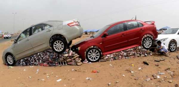 І все ж навіщо саудівська молодь обкладає камінням машини? Є варіанти, що кам'яні стоянки захищають машини від угону, від підтоплення, не дозволяють пробратися до салону пустельних скорпіонів, або захищають гуму коліс від перегріву на землі.