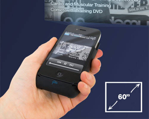 Забудьте про громіздкі проектори! Чохол із вбудованим піко-проектором PicoGenieA100 для iPhone та iPodTouch дозволить спроектувати картинку, відео чи презентацію з екрану смартфона на будь-яку поверхню. Проектор відображає мультимедіа діагоналлю до 60 дюймів та оснащений функцією додаткового посилення звуку.