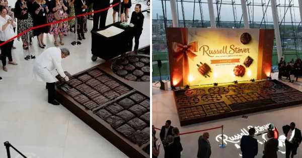 Гігантська коробка шоколадних цукерок – мрія будь-якого ласуна. Її спробували втілити у життя кондитери зі штату Міссурі, США. Вони створили солодку композицію, яка включала 205 гігантських шматочків шоколаду з різними смаками. Вага готового виробу склала 2547,5 кілограмів.