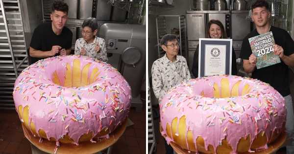 Кулінари зі США та Японії спекли найбільший у світі пончик із солодкою начинкою. Вага солодощі склала 100 кілограмів. На його виготовлення пішло понад 8 годин.
