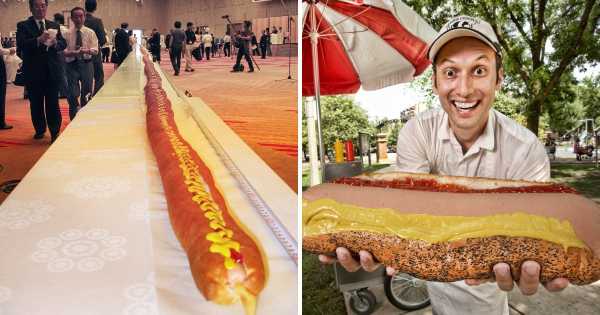Найдовший хот-дог у світі складався з 60-метрової сосиски та 60,3-метрової булочки. Ще один рекордно великий фаст-фуд створили американець Денн Аббат, який придумав готувати великі хот-доги для гриля. Вага однієї такої смакоти складає 3,18 кілограма.