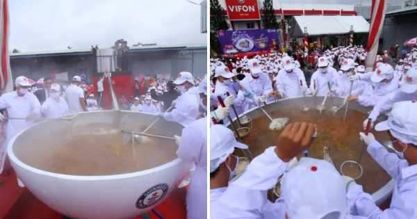 Величезний суп із локшиною вагою 1300 кілограмів нагодував майже 2000 людей у В'єтнамі у 2018 році.