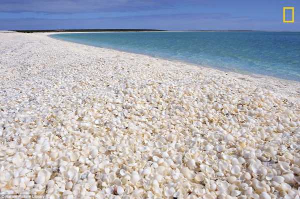 Шелл-Біч (черепашковий пляж) на затоці Шарк в Західній Австралії. Він є об'єктом Світової спадщини ЮНЕСКО; пляж з безлічі білих черепашок, до 30 футів глибиною в деяких місцях, тягнеться на багато миль.