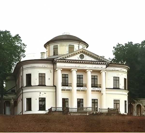 Садиба була збудована наприкінці XVIII століття у стилі класицизму. Вона була виконана на зразок популярних на той час садиб — «монплезірів». 1996 року вдалося встановити автора цієї споруди — ним був Матвій Козаков. Будинок був збудований з червоної цегли і облицьований білим каменем. Також на території садиби розташовувалося кілька флігелів та парк. Ось такі спогади залишила одна з гостей цього комплексу: «Вся садиба розташовувалась на височини, через що парк у двадцять сім десятин був завжди пронизаний сонцем».