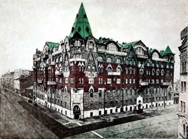 Будинок був зведений у 1776 році. Достеменно невідомо, хто був автором цього твору, але, на думку Ігоря Грабаря, — Василь Баженов. Свого часу в будівлі розміщувалися готелі, престижні ресторани та кафе, куди любили заглядати багато діячів культури. Ось такі спогади залишила одна з відвідувачок цього будинку: «Мені, як іноземці, здавалося, що я потрапила до казкового світу». Згодом тут розташовувалась книгарня з бібліотекою, куди любив заглядати Пушкін. Пізніше приміщення переобладнали під готель, де зупинялися Тургенєв, Некрасов, Салтиков-Щедрін.