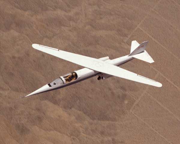 Дослідницький літак НАСА для вивчення змінної геометрії крила. Перший у світі літак із «косим крилом». У порівнянні з крилом симетрично змінюваної стріловидності дана схема має на 11-20% менший лобовий опір, на 14% меншу масу і на 26% менший хвильовий опір.