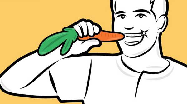 Свіжі, хрусткі фрукти та овочі чудово справляються зі зміцненням та очищенням зубів. Наприклад, яблука та морква допомагають зняти плями, які виникають на зубах любителів нікотину та кави. Крім того, в яблуках і полуниці міститься яблучна кислота, що природно відбілює емаль.