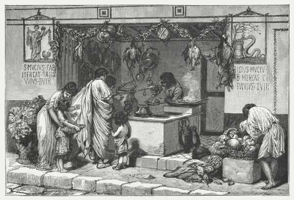 Але в Римі, як і потім у всій Європі, багато століть поспіль на такі ринки приходили дійсно швидко поїсти – до кінця 18 століття люди їли поза домом лише за крайньої потреби. Наприклад, якщо вирушили в дорогу і не брали із собою якоїсь сухпайки.