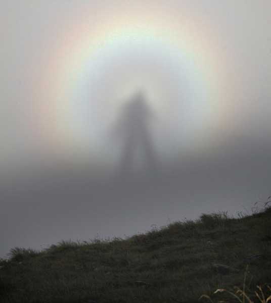 Рідкісне оптичне явище, відоме під назвою «гірський привид», яке виникає, коли людина стоїть на великій висоті в горах і бачить свою тінь, що відкидається на хмари на нижчій висоті.