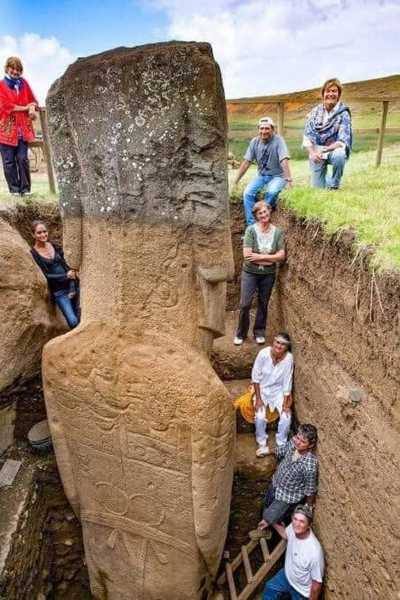 Детальне різьблення на довго колишній закопаній статуї моаї на острові Великодня, позбавленої ерозії.