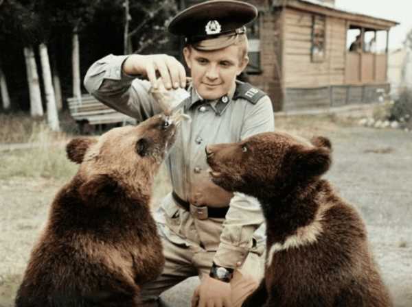 Прикордонник годує ведмежат згущеним молоком, 1975 рік