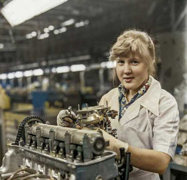 Працівниця заводу збирає двигун Жигулів, 1979 рік