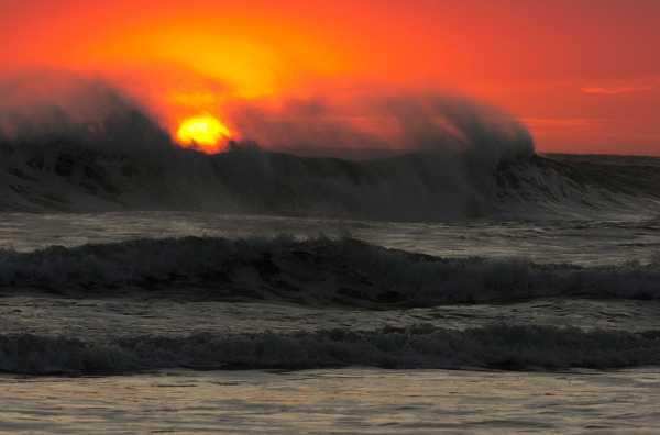 Ці хвилі на тлі заходу сонця утворені сильним вітром. © Pixels2u