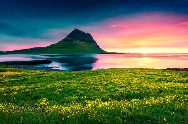 Захід сонця біля гори Кіркьюфетль. Далі лише океан. Назвою гора зобов'язана схожістю формою з дахом кірхи. © Andrew Mayovskyy