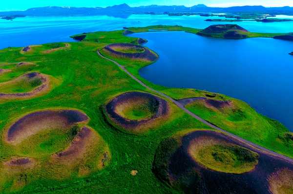 Вулканічні кратери у зелених рівнинах поблизу озера Міватн. © Inbound Horizons