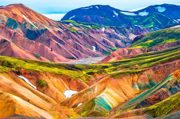 Різнокольорові вулканічні гори Ландманналойгар влітку. © Oleg Senkov