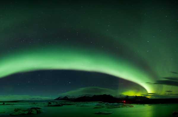 Полярне сяйво над Єкюльсаурлоуном – найбільшою льодовиковою лагуною в Ісландії. © Vicki Mar