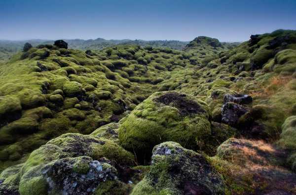 Кам'янисті лавові утворення, що поросли мохом. © Allison Michael