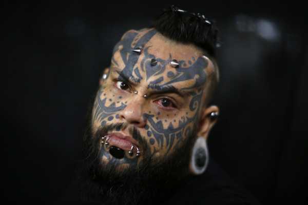 Еміліо Гонзалез, що перевіряє все нові способи татуювання та боді-модифікації на собі.
