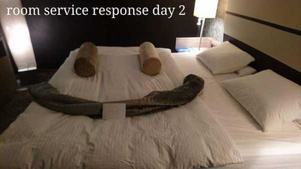 Автор цих знімків часто їздить у відрядження, де мешкає у готелях. Його хобі – залишати в номері перед своїм відходом усілякі фігури з підручних засобів для покоївки. У більшості випадків покоївки просто виконували свою роботу, але під час перебування в одному з готелів Баку покоївка почала залишати свої відповіді.