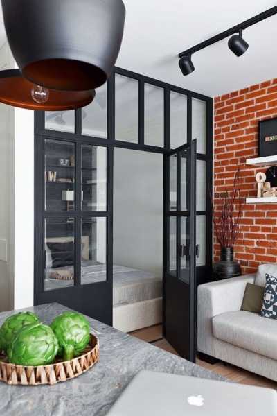 Коли маленька квартира стильна, навіть не помічаєш, що її хазяям бракує місця. Ця однокімнатна квартира запам'ятовується насамперед тим, що у неї продумана кожна деталь, від заскленої спальні, до стильної шафи-купе у передпокої.