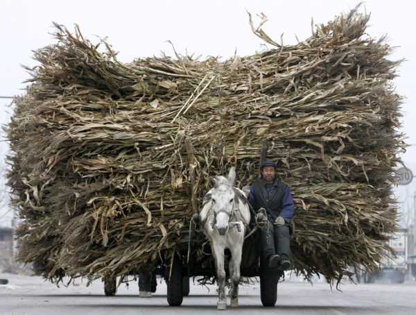 І знову Китай, провінція Хебей. Фермер везе сушені стебла. (Фото Jason Lee | Reuters):