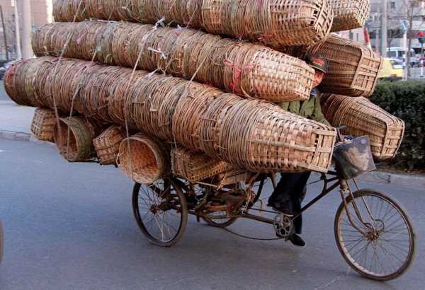 Ця людина заробляє вантажними перевезеннями. Він не міг собі дозволити купити для цього автомобіль, а ось велосипед за $55 — це запросто. Його нове замовлення – доставка бамбукових кошиків, Пекін. (Фото Andrew Biraj | Reuters):