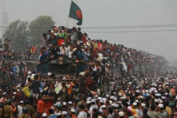 Понад 2.5 мільйони мусульман зібралися недалеко від столиці Бангладеша на Всесвітні мусульманські збори — друге після ходжу найбільше щорічне ісламське свято. Після закінчення спільної молитви величезна кількість віруючих повертається на батьківщину, котрим доводиться їхати на дахах поїздів, автобусів. Повернення на батьківщину по-бангладешськи – незвичайне видовище: