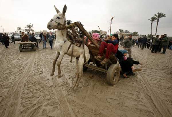 Кордон між Газою та Єгиптом. Ця палестинська родина невірно розрахувала кількість людей у возі. Хоча до кордону вони якось дісталися. (Фото Suhaib Salem | Reuters):