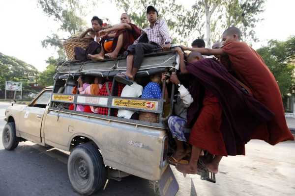 Місто Мандалай – колишня столиця королівства Бірми. Буддійські ченці не влізли до місцевої маршрутки, довелося їхати ззаду. (Фото Soe Zeya Tun | Reuters):