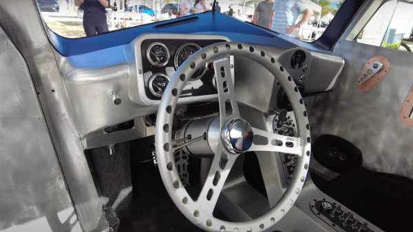 Велика робота також була зроблена із салоном пікапа. Тут з'явилася повністю саморобна сталева передня панель із приладами SoCal, спрямованими у бік пасажира. На невеликій табличці ліворуч від рульового колеса вказано Willys 1963 року випуску – саме під цією назвою зареєстрований цей кастом.
