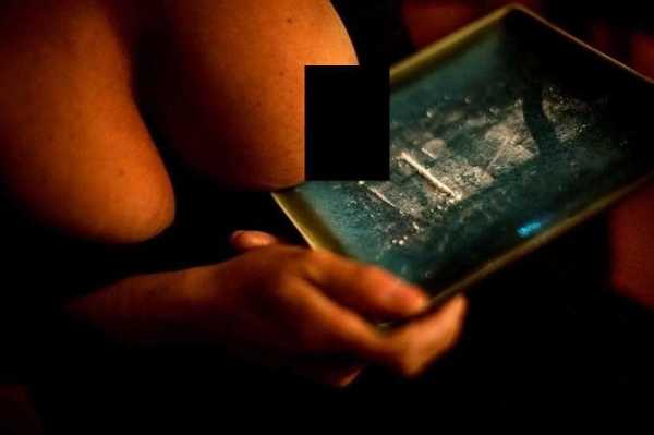 Гола жінка з тацею кокаїну на вечірці вищих верств суспільства.