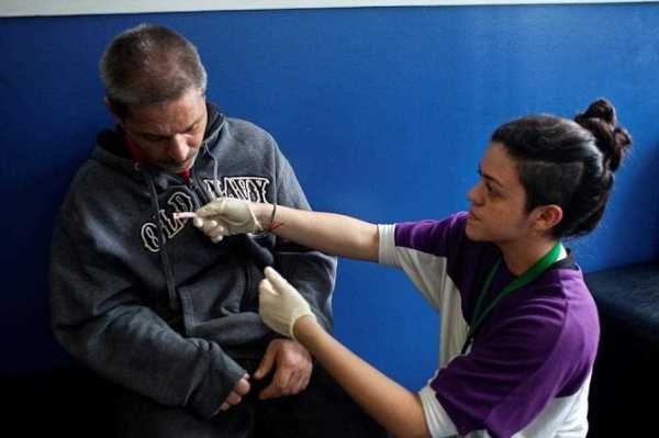 Медпрацівниця намагається привести до тями хлопця, який страждає від передозування.